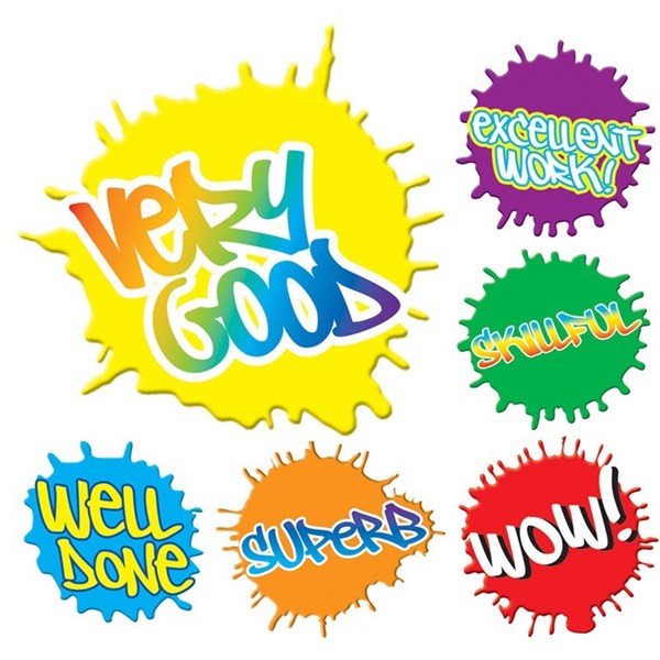 Looking to reward kids at home or in the classroom? A fantastic range of bright, fun merit stickers for teachers and parents to reward good behaviour at home or in the classroom - Fun words on paint splat designs kids will feel proud to receive