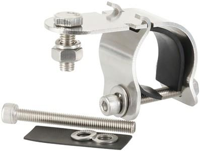 SL3927 brackets are made of stainless steel with shockproof rubber insulation and are used to mount driving lights, UHF antennas, and other applications to tube frames such as bull-bars or roof racks. They provide easy attachment without scratching or denting the frame.