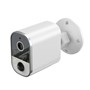 The QC3891 is a wire-free, rechargeable battery-powered IP camera that can be easily mounted on the wall in a home or office. It connects to a Wi-Fi network and can be accessed through an app on iOS or Android smartphones. It has night vision, motion detection, and can be charged from a USB power source for up to 3 months. The box includes the camera, wall mount bracket, microUSB charging cable, and wall mounting hardware. The camera also has 2-way audio communication and Amazon Cloud storage backup.