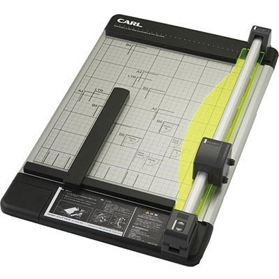 Carl trimmer features standard size paper markings to enable easy use, ergonomic design with magnetic paper size guide, rail mechanism to hold paper firmly in place and extra large cutting capacity - Fluorescent and luminous ABS cutting guide for increased accuracy