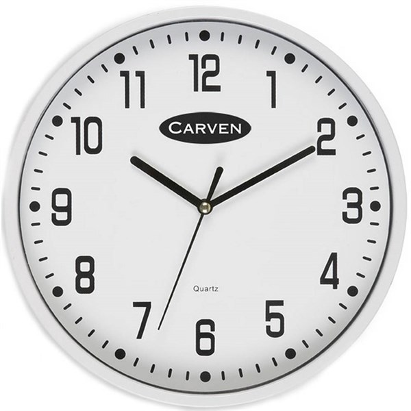 Carven wall clock is a high quality analogue clocks that can be wall mounted - Large, clear numbers and quality hands and a smart white rim