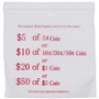 Cumberland clear plastic Press Seal coin bags with denominations and values for 5c, 10c, 20c, 50c, $1, $2 coins printed red - Red printed coin denominations