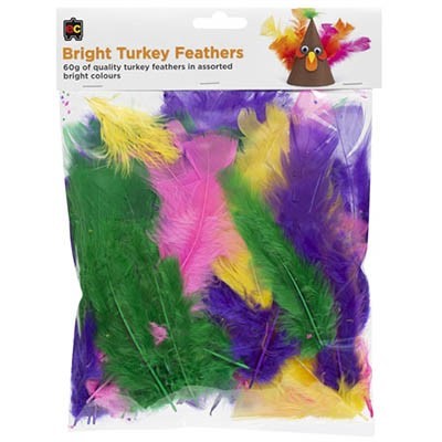 EDUCATIONAL COLOURS TURKEY FEATHERS 60G BRIGHT ASSORTED