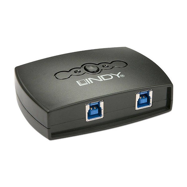 Lindy 2 Port USB 3.0 Sharing Switch , Share between 2 computers, Switching between computers with a simple button press, Combine with a USB hub to share multiple devices, Bus-powered with no external power supply required
