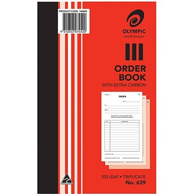 OLYMPIC 639 ORDER BOOK CARBON TRIPLICATE 100 LEAF 200 X 125MM