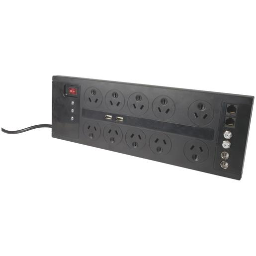 PWRBRD 10WAY 144KA SURGE USB BLK