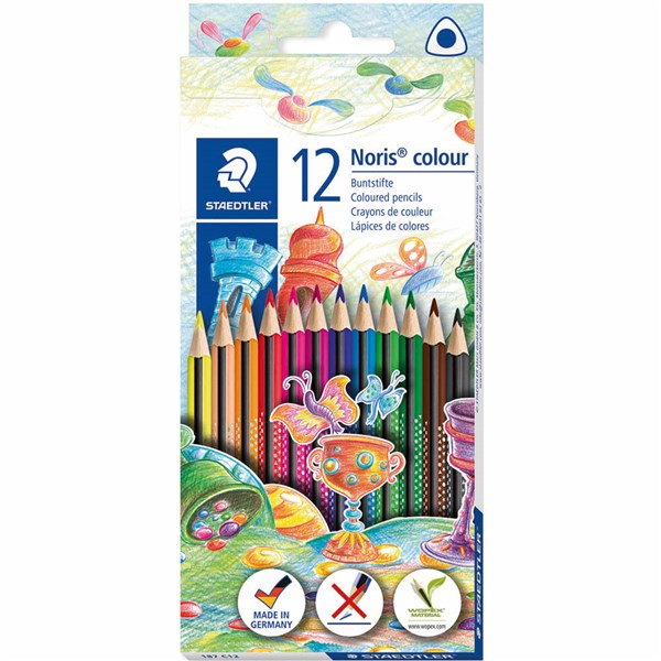STAEDTLER 187 NORIS COLOUR TRIANGULAR COLOURING PENCILS ASSORTED BOX 12